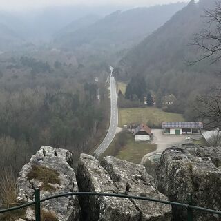 Über die Schwechat und nach links über die Antonsgrotte zum grün markiertem Waldweg durch den Kalkgraben. Weiter auf der roten Markierung über den Hochwiesensattel, wo wir uns links halten und zuletzt über einen Fußweg einen Talgrund erreichen. Bei einer Abzweigung nach rechts hinauf zur Königshöhle und zur Ruine Rauheneck. Von hier abwärts zum „Wegerl im Helenental“ und die Schwechat aufwärts an der Eugenvilla vorbei, über die Schwechatbrücke zurück zum Ausgangspunkt.