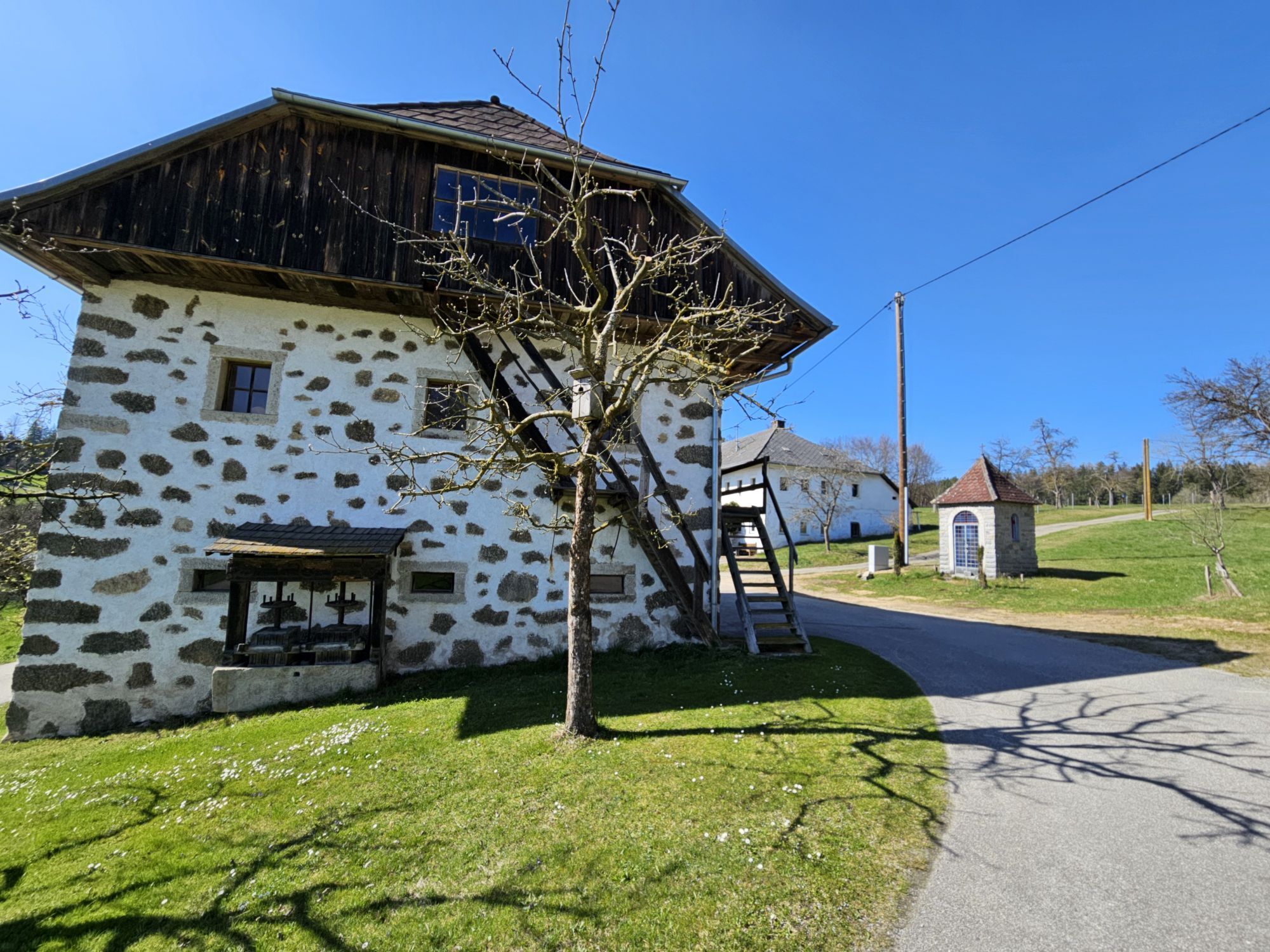 Soon begins the crossing of the third intermediate river ridge (7.7 km, 303 m ascent, 260 m descent) into the Steinerne Mühl valley. After a rural ridge with a traditional hop garden in Marbach, a trail-like forest descent with a challenging forest ascent awaits. Shortly after the Hollerberger homestead, a quick descent to the Fleckbach provides welcome regeneration. Now, it’s time to push again: initially on a steep farm road, finally steep direttissima over the meadow to the Denkmalhof Unterkagerer, a jewel of rural cultural heritage. On the farm road just above, you stand with a high pulse but a beautiful distant view at the highest point (660 m). Congratulations! The 3.2 km long descent with a short counter ascent leads flowingly down into the forest-rich Steinerne Mühl valley. You leisurely follow the meanders of the hidden river on natural riding paths.