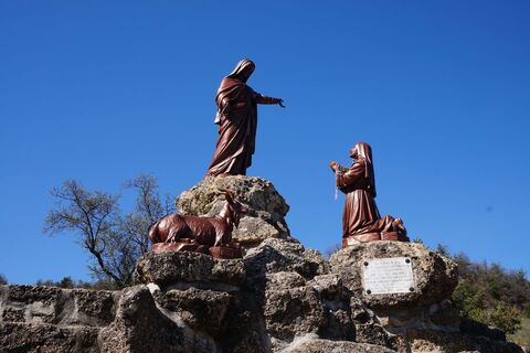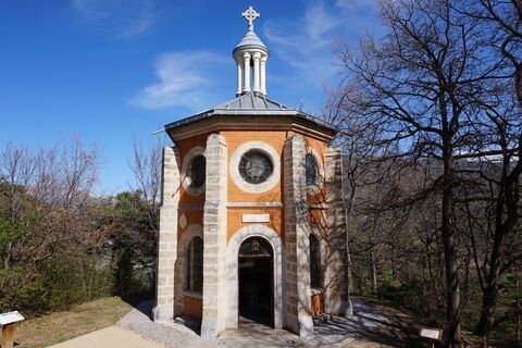 Revenir sur ses pas jusqu'à la dernière croisée des chemins. Prendre à droite, en direction de la chapelle du Précieux Sang pour finir la boucle. Arrivé à la route, traverser cette dernière pour prendre le temps d'aller admirer la chapelle du Précieux sang et sa croix, véritable œuvre d’art. La Chapelle du Précieux sang s’élève à l’emplacement où, du temps de Benoîte Rencurel, était érigée une croix en bois dite « Croix d’Avançon » lieu de prières des pèlerins. Cette chapelle a été inaugurée en 1862. L’ancienne croix d’Avançon est aujourd’hui suspendue au centre de l’édifice. Enfin, par la route goudronnée, rejoindre tranquillement le parking de départ.