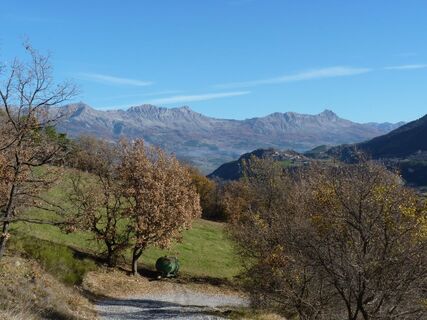 Le monument de Pindreau remplace depuis 1926 le modeste oratoire construit pour commémorer l’apparition de la Vierge à Benoîte. Panorama sur la vallée de l’Avance où coule la rivière éponyme. En face, le village de Saint-Etienne-Le-Laus où naquit sœur Benoîte. Derrière le village, le vallon des Fours où était cuite la pierre pour en faire du plâtre. A droite du village s’étire le Bas Col, ancien passage menant au village de Remollon. Fermant la perspective, la montagne Saint-Maurice (1412m) où vécurent les moines de l’abbaye de Boscodon.